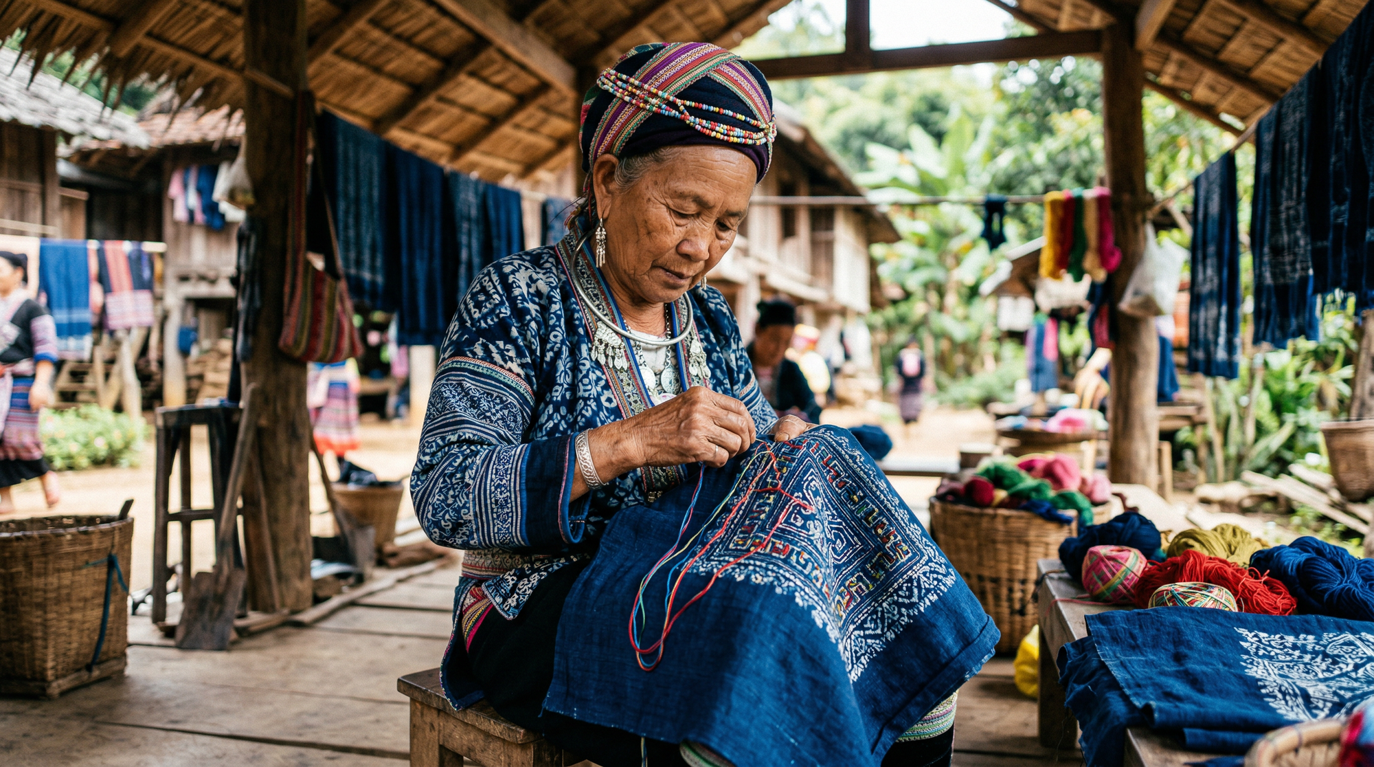The textiles are what most visitors encounter first, and they are worth more attention than a market glance. Hmong traditional clothing is renowned worldwide for its vibrancy, complexity, and meticulous craftsmanship, serving as a clear visual indicator of sub-group affiliation. Blue Hmong women are famous for their dark indigo hemp skirts exquisitely patterned using the ancient technique of batik, while White Hmong women wear black or dark trousers and a tunic distinguished by an intricately embroidered silk or satin panel. Maehongsonholidays