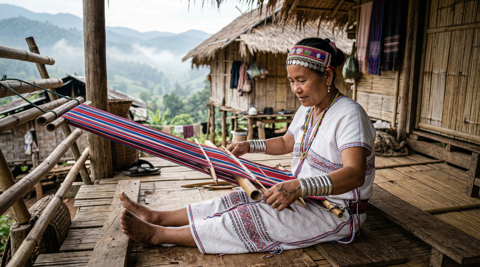 The textile tradition is one of the most visible expressions of Karen identity. The most traditional Karen tribespeople wear silver armbands and a beaded sash and headband, while unmarried women wear white shift dresses. Frommers The weaving patterns are not decorative. They carry information about lineage, community, and the weaver's own place within both. A Karen woman does not produce cloth : she produces autobiography.
